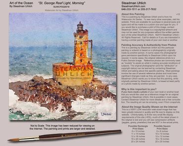 Lighthouses are one of my favorite things to see when near the ocean. I have visited several around the USA, including climbing to the top when possible. I have studied their history, construction, and design. I have depended on them when sailing offshore, when nearing a dangerous headland or reef. As a sailor, I have great need of them and respect for them. I love them as a painting subject too